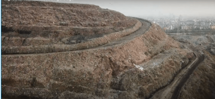 A Garbage landfill equivalent to 40 football pitches, which in years had grown as tall as 65 meters. A landfill that was predicted to grow almost as tall as Taj Mahal. One among the tallest landfills of the world. Unbearably stinking, sight of no other birds except eagles, openly hung meat and a tall hill of garbage.