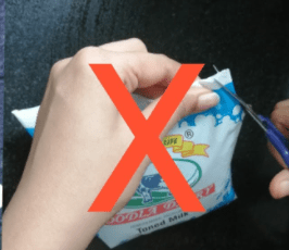 Let’s assume, You bought a 2L milk pack and now you want to transfer it a container.Generally, we cut milk packs from a corner, we snip off that little corner from the milk packet right?
